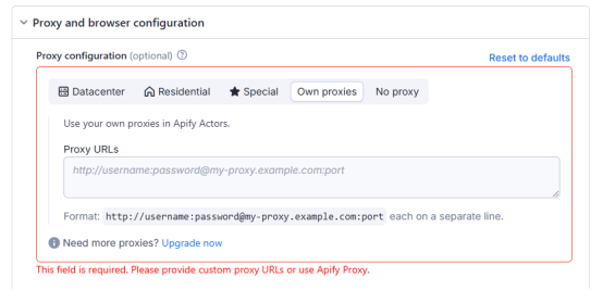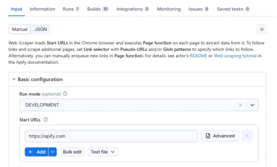 1.在 “Input” 选项卡的 “Start URLs” 部分
