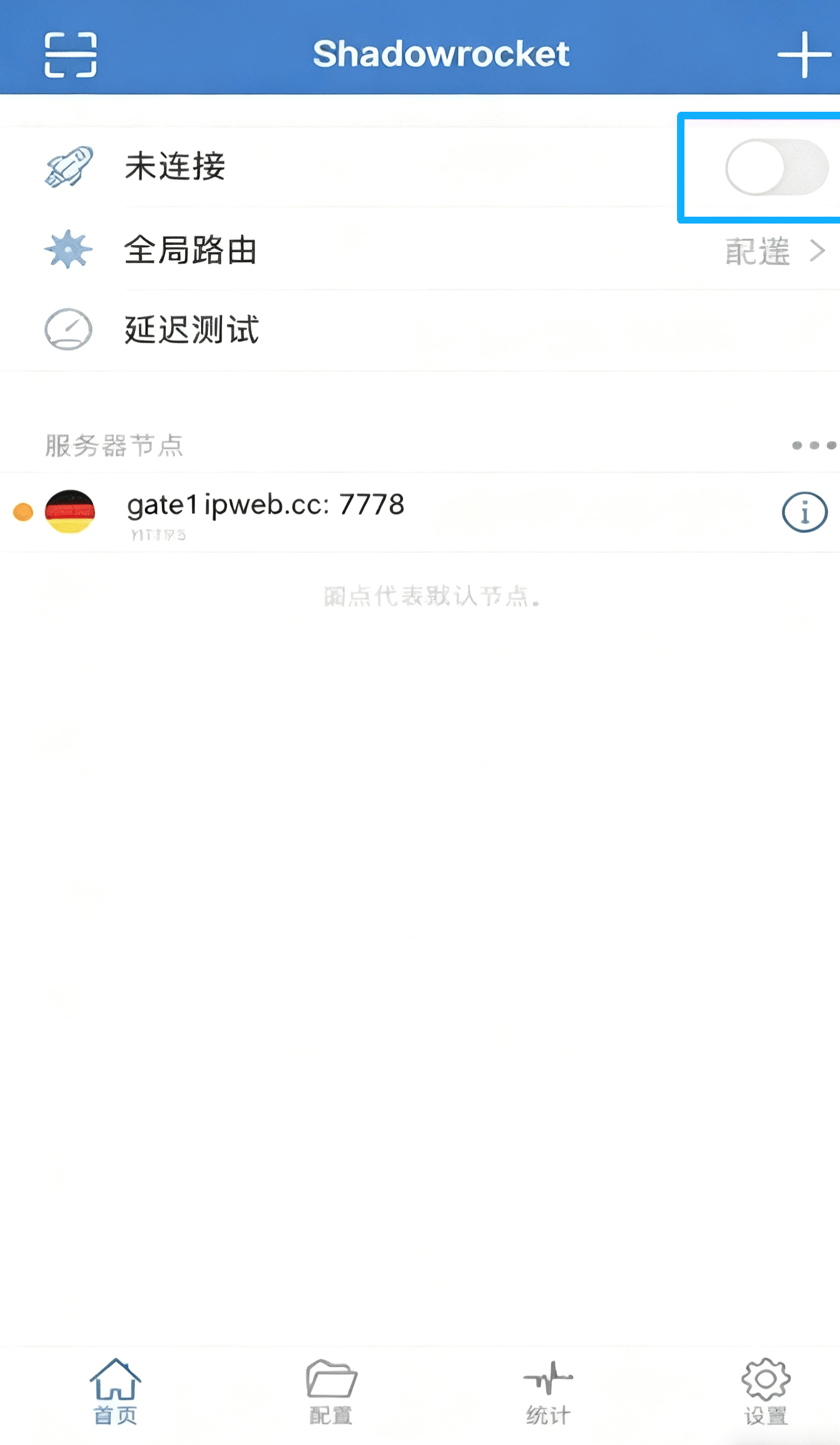 启用代理连接返回主界面后,您会看到服务器列表下新增了刚配置的 ipweb 服务器。点击 “未连接” 旁的开关按钮,即可启动代理。